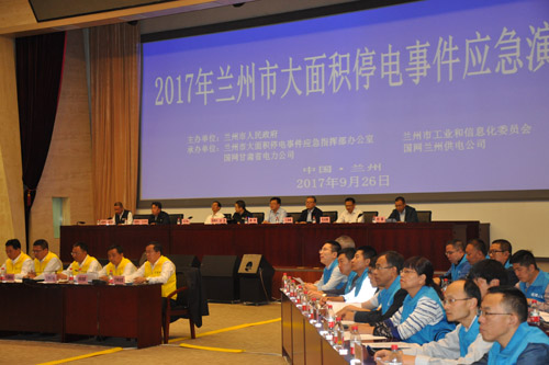为贯彻落实《国家大面积停电事件应急预案》和《甘肃省大面积停电事件应急预案》,进一步提升城市电力应急管理水平,促进全社会建立电力应急协调联动机制,省市两级历时半年精心筹划,兰州市大面积停电事件应急演练于9月26日上午在国网甘肃省电力公司成功组织开展。本次演练由兰州市人民政府主办,兰州市大面积停电事件应急指挥部办公室、兰州市工信委、国网甘肃兰州供电公司承办。兰州市大面积停电事件应急指挥部成员单位、重点企业等50家单位参加可此次演练,现场参加演练人员共300余人。